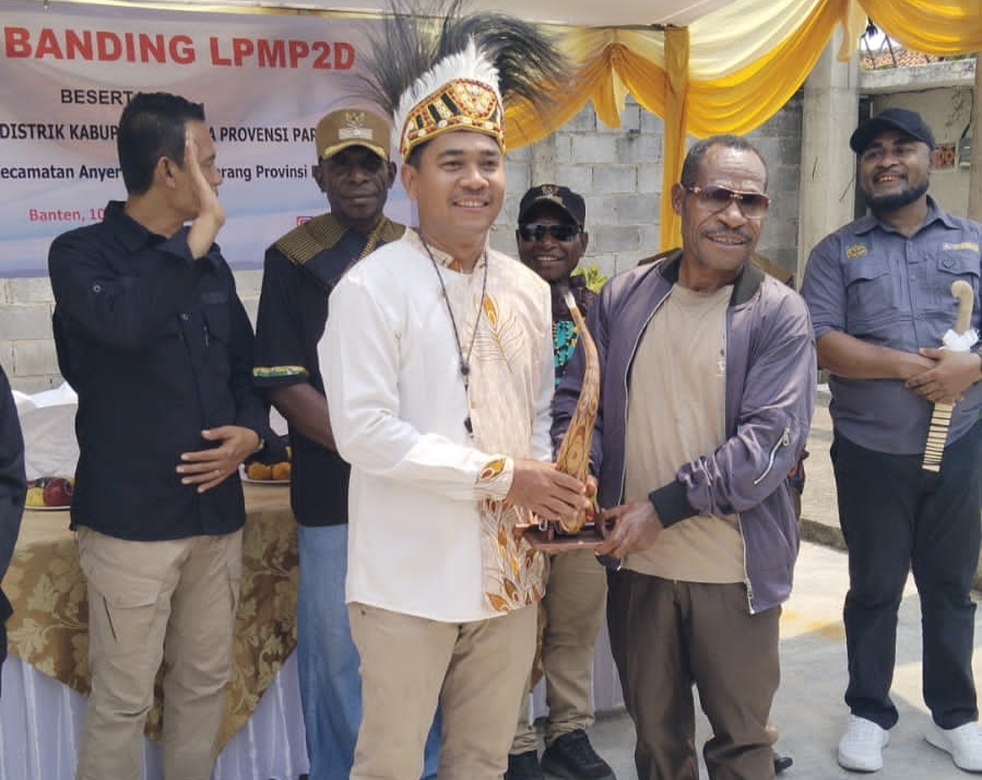Kemudian di laksanakan pemberian cindera mata oleh KDMP Mekarsari berupa sarung dan Golok yang menjadi ciri khas Banten, begitu juga sebaliknya Ketua KDMP Mekarsari menerima cindera mata khas Papua berupa topi khas papua dan sebuah Gading.