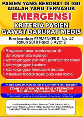 Serang [Banten] botvkalimayanews.com||Rumah sakit wajib memberikan pelayanan gawat darurat tanpa melihat status kepesertaan atau waktu rawat inap sebelumnya.