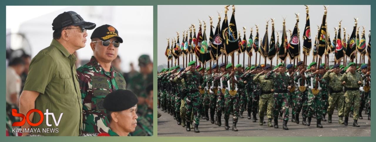 Bandung [Jabar] botvkalimayanews.com|| Panglima TNI Jenderal TNI Agus Subiyanto bersama Menteri Pertahanan RI Sjafrie Sjamsoeddin dan para Kepala Staf Angkatan meninjau langsung pelaksanaan geladi bersih Upacara Gelar Pasukan Operasional dan Kehormatan Militer di Lapangan Udara Suparlan, Pusdiklatpassus, Batujajar, Kabupaten Bandung Barat, Jumat (08/08/2025).