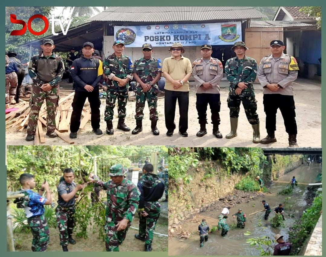 Cilegon [Banten] botvkalimayanews.com||Perserta Latsitarda Nusantara kompi A Hiu Cibeber di wilayah lingkungan krotek Kelurahan kalitimbang kecamatan Cibeber kota Cilegon yang melaksanakan Gotong Royong pembersihan Sungai Bersama Babinsa Koramil 2301/Cilegon berserta anggota Forkopimcam Cibeber. Senin, (09/06/2025).