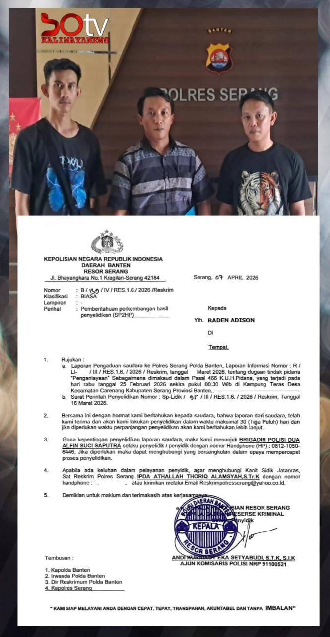 Hari ini, Selasa (07/04/2026) korban beserta sejumlah saksi memenuhi panggilan penyidik Unit Jatanras Satreskrim Polres Serang Kabupaten untuk memberikan keterangan tambahan terkait laporan polisi yang dilayangkan pada Februari lalu.