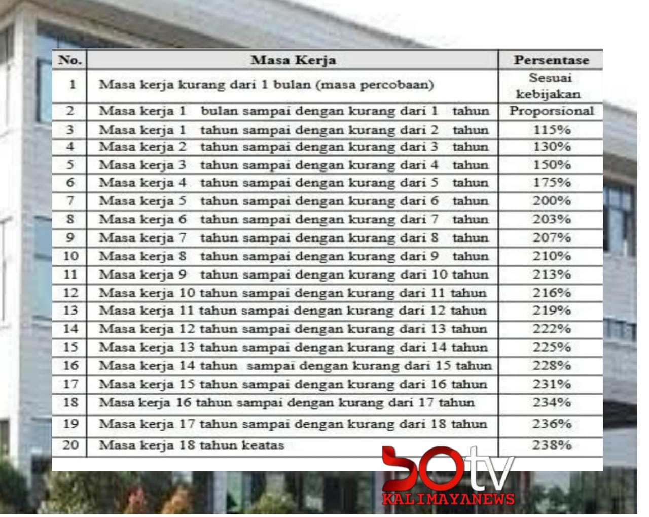 Masa Kerja Senior: Skema persentase yang luar biasa, di mana karyawan bisa mendapatkan hingga 238% dari gaji pokok berdasarkan masa bakti mereka.