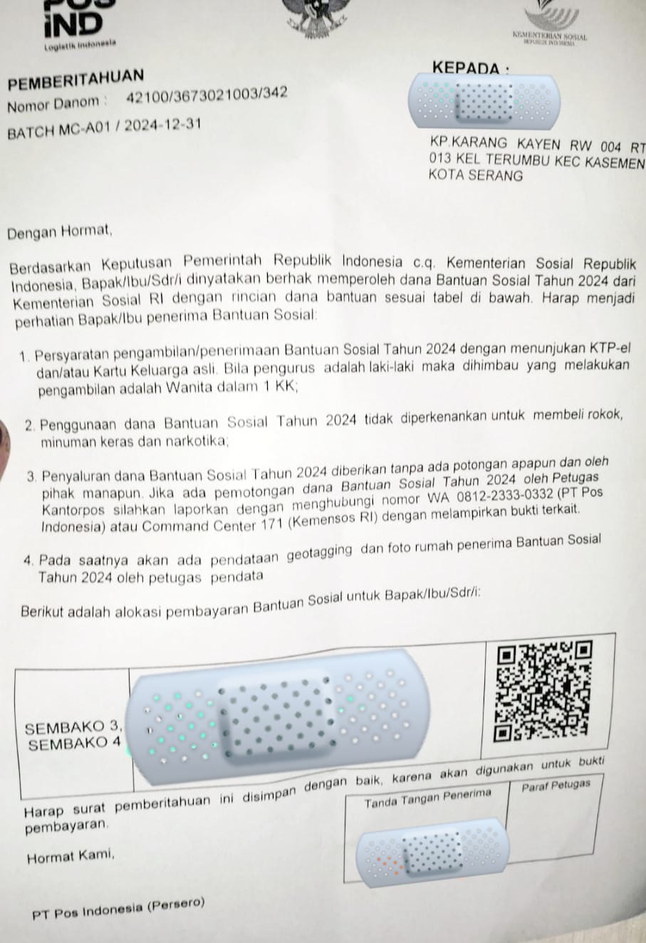 Serang [Banten] botvkalimayanews.com||Terkait pemberitaan dugaan pungutan liar (pungli) Bansosoknum staf kelurahan Terumbu kecamatan Kasemen Kota serang yang pernah ditayangkan botvkalimayanews pada edisi Desember 25.2024 lalu.