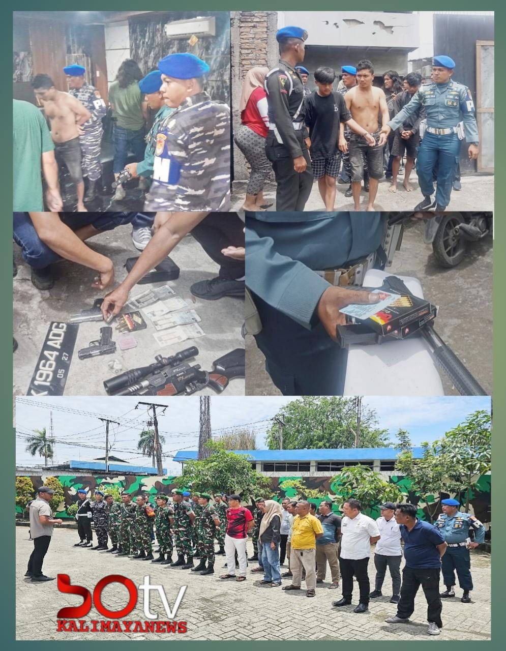 Selain mengamankan keempat orang tersebut, petugas gabungan juga menyita sejumlah barang bukti berupa satu pucuk senapan laras panjang jenis Airgun, satu pucuk senjata pistol jenis Airgun, dua pucuk senjata pistol jenis Air Softgun, satu kotak peluru jenis mimis Gotri,