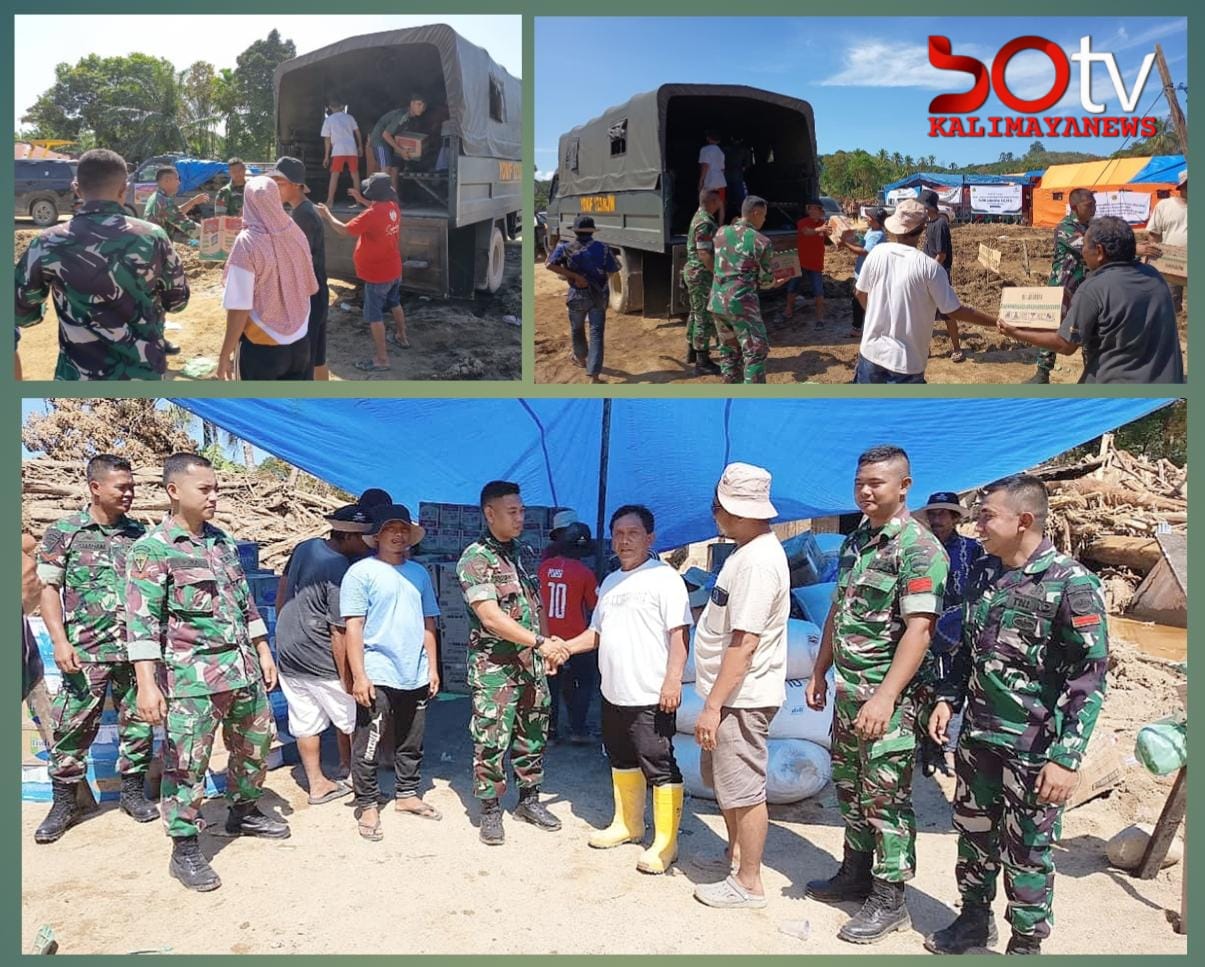Yonif 123/Rajawali Serahkan Bantuan Logistik di Posko Bencana